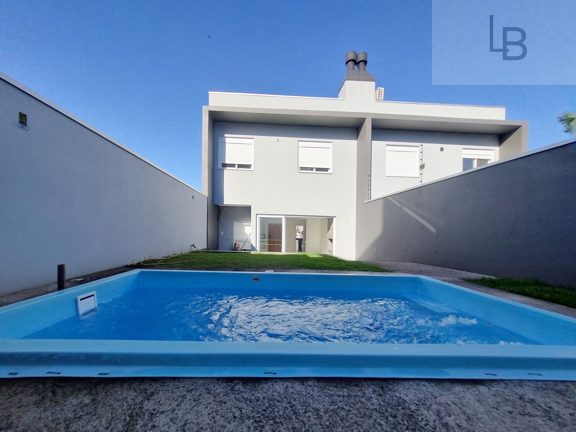 Amplo pátio nos fundos com piscina.